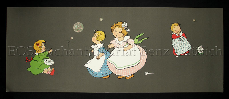 Anonym: (Mit Seifenblasen spielende Kinder). (Leipzig, Hollerbaum & Schmidt), ca. 1910. Farbige Lithographie. 70 x 28 cm.