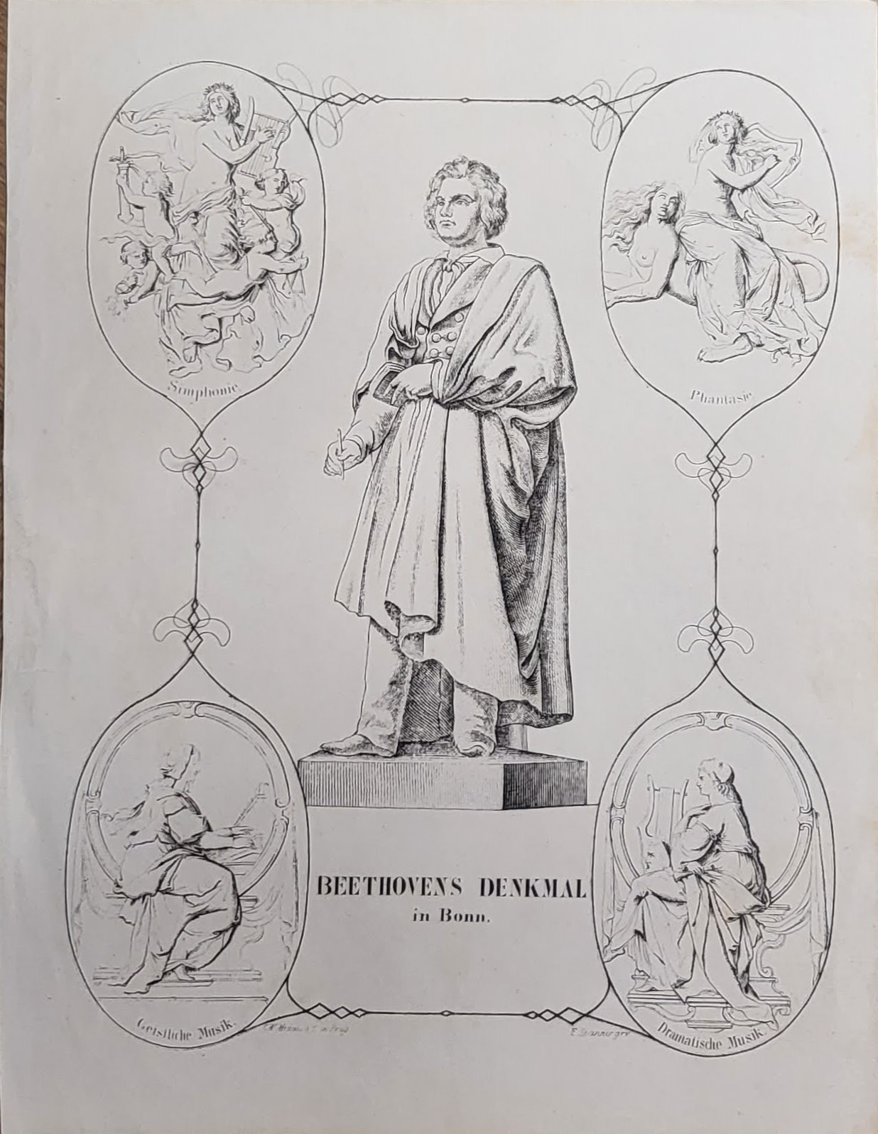 Beethoven, Ludwig van (1770-1827): Beethovens Denkmal in Bonn. Prag, C.W. Medau und Co. um 1850. Lithographie von F. Spanner. 21,5 x 16,5 cm. Blattgrösse: 24 x 18,7 cm.