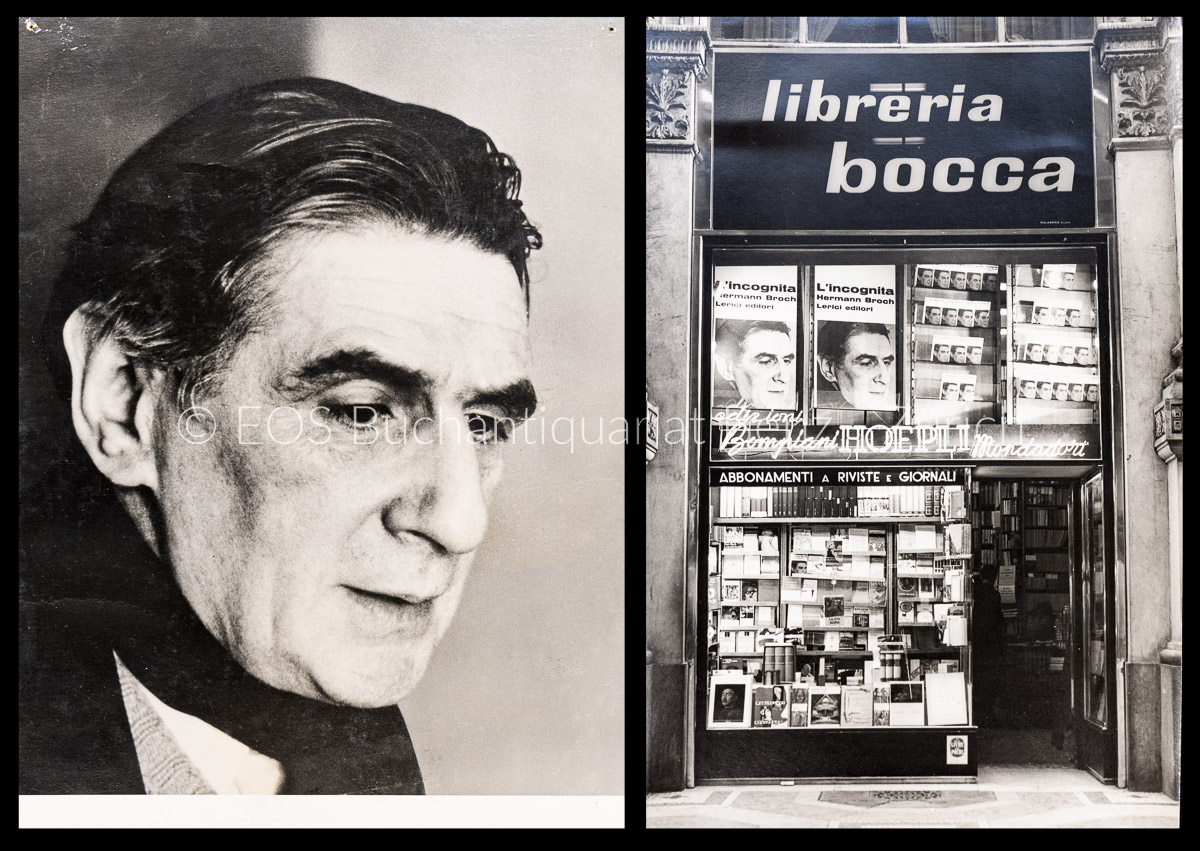 Broch, Hermann (1886-1951): Portrait-Fotografie und 4 Fotografien des Schaufensters “Hoepli Milano”.