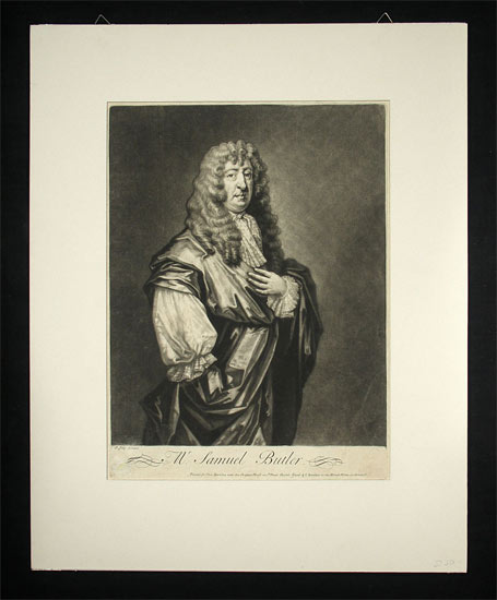 Butler, Samuel (1612-1680): Engl. Verssatiriker. O.J. (um 1750) Kupferdruck in Schabkunst nach P. Lilly. Bildgrösse: 31 x 25 cm. Blattgrösse: 41 x 30 cm.