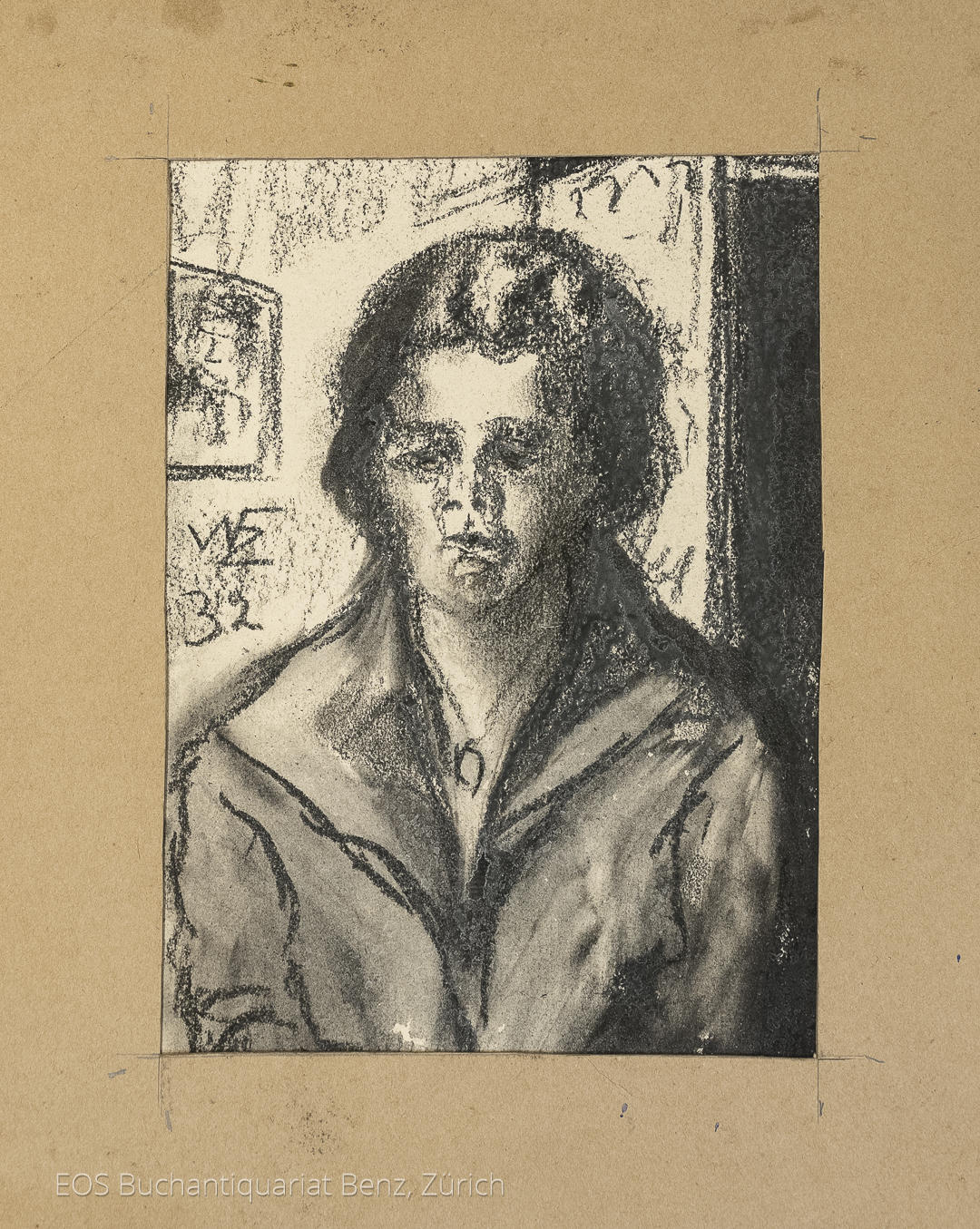 Eckertz, Waldemar (1878–1947): Lotte Eckertz. 1932. Schwarze Ölkreide auf festem Papier, unten links monogrammiert und datiert. 21 x 15 cm.