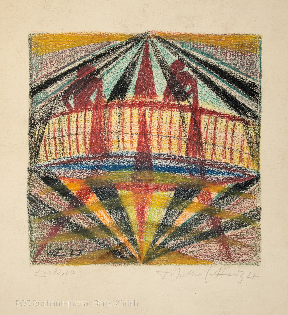 Eckertz, Waldemar (1878–1947): Zirkus. 1927. Farbkreide auf Karton, unten links monogrammiert und datiert. 23 x 23 cm.
