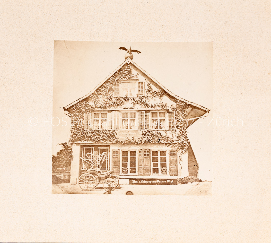Fotografie vom Post & Telegraphen-Bureau Wyl. ca. 1880 Fotografie Bildgrösse: 13,5 x 14 cm.
