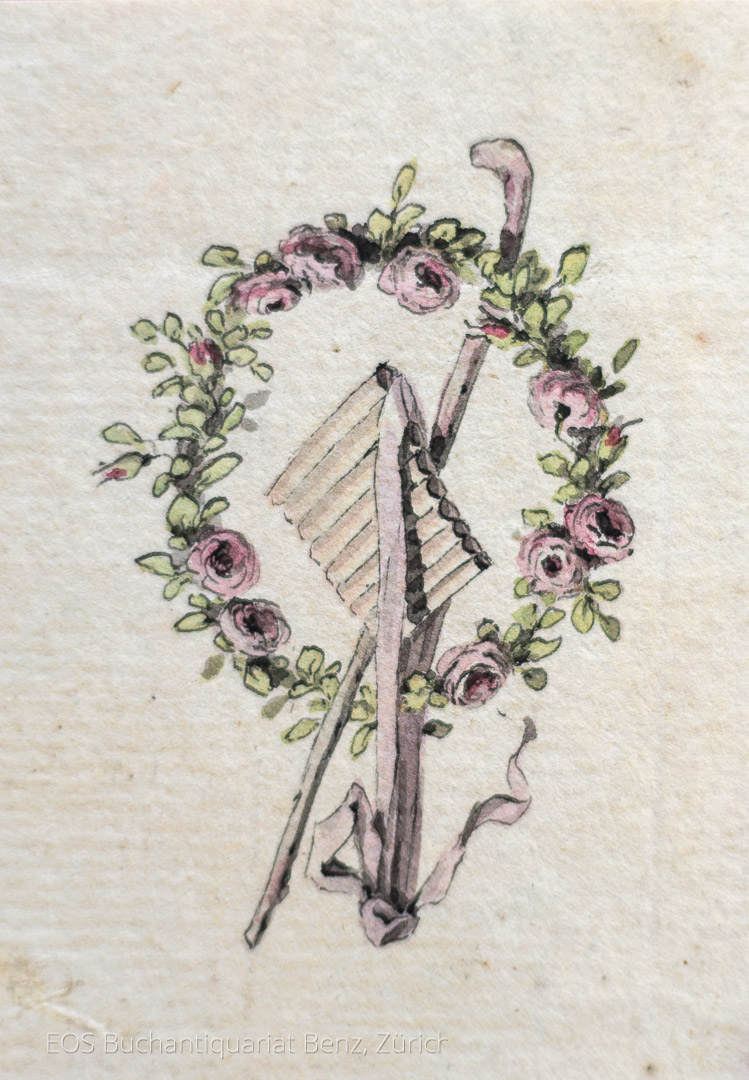 Gessner, Salomon (1730–1788): Vignette. Kolorierte Original-Zeichnung von Salomon Gessner. 6,5 x 4,7 cm.