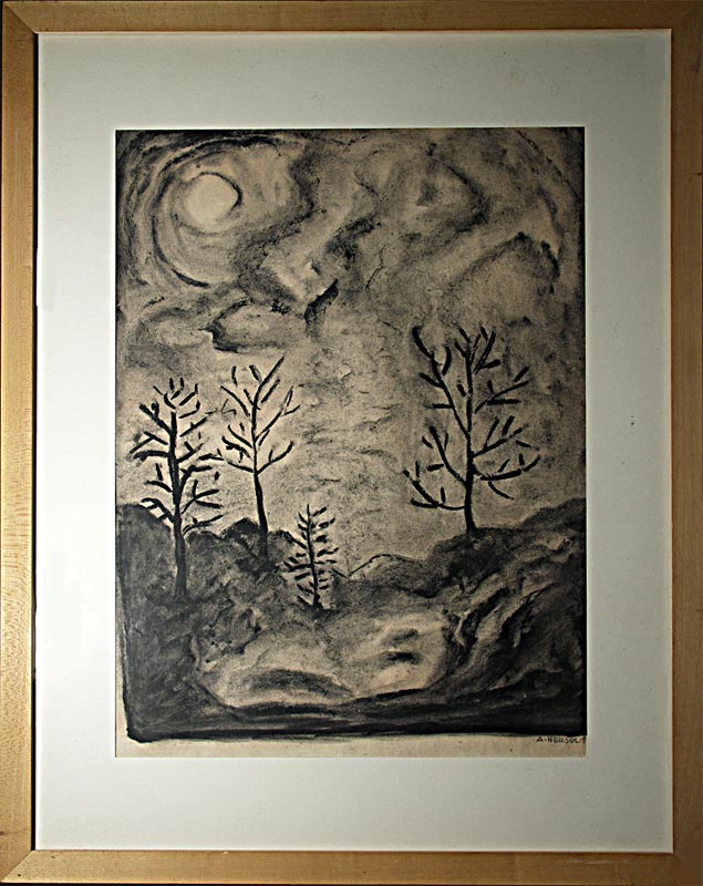 Heuser, A.: Tannenbäume bei Nacht. 1949. Wasserfarbe. Bildformat: 28 x 38 cm.