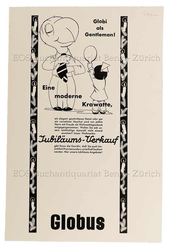 Globi. – Lips, Robert (1912-1975): Globi als Gentleman! Eine moderne Krawatte. Zürich, Globus, um 1932. Blattgrösse: 34 x 23 cm.