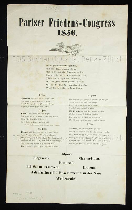Pariser Friedens-Congress 1856.  Zürich, 1856. Blattformat: 41 x 25 cm.