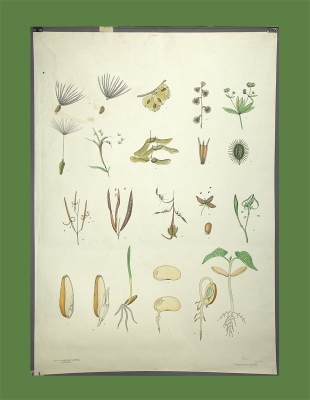 Pflanzensamen. Stockholm, A.-B. P. A. Norstedt, o.J. (um 1940). Farblithographie. Bildformat: 75 x 100.5 cm.
