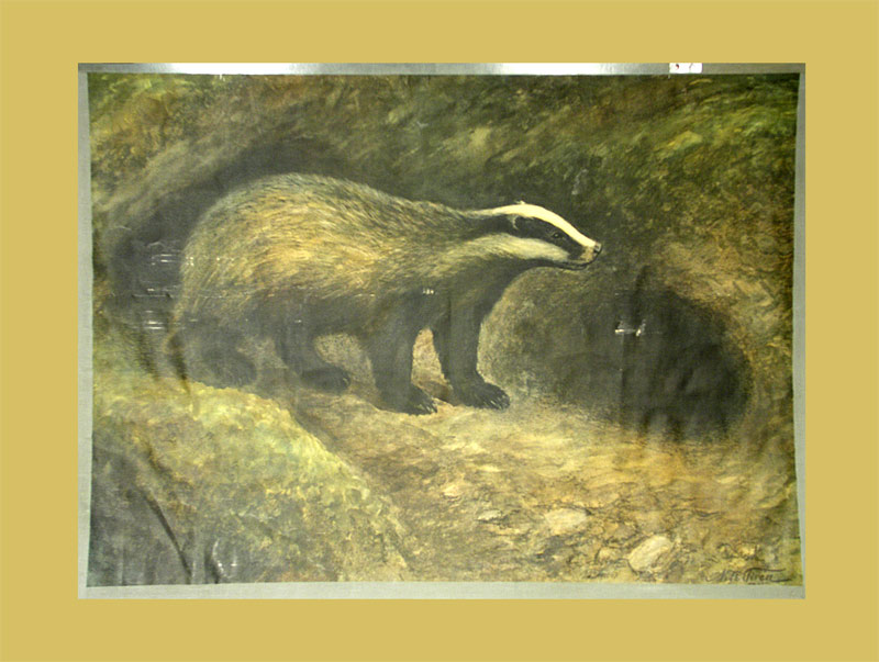 Tirén, Nils (1885-1935): Schwedischer Tiermaler. Dachs. 1935. Farbige Lithographie. Bildformat: 95 x 70 cm.