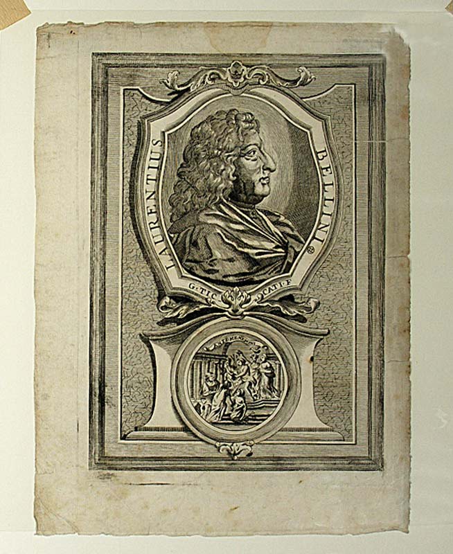 Angestaubt. – Résumé: Bellini, Lorenzo (1643-1704): Italian physician and philosopher. Copper engraving (profil portrait). About 1720. – Shop-soiled.