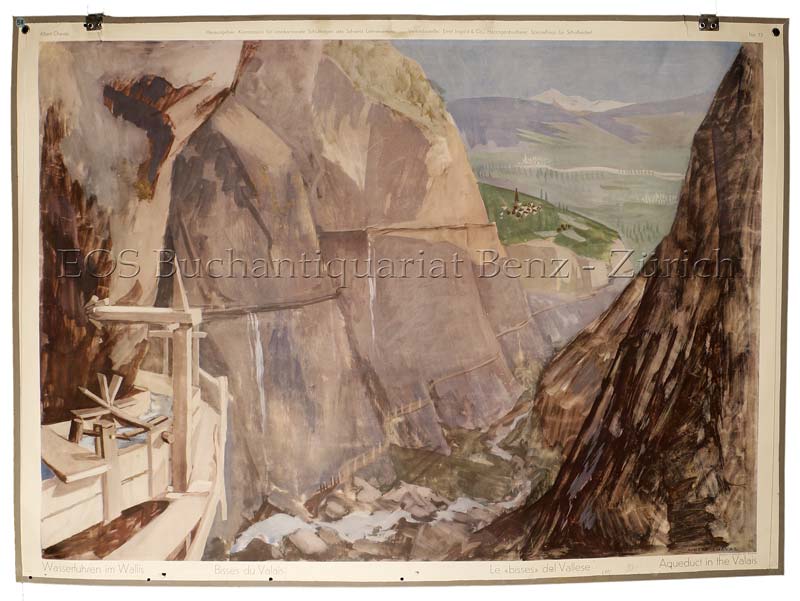 Chavaz, Albert (1907 – 1990): Wasserfuhren im Wallis. Herzogenbuchsee, Ernst Ingold, 1952. Farbiger Offsetdruck. Bildformat: 65 x 90 cm.