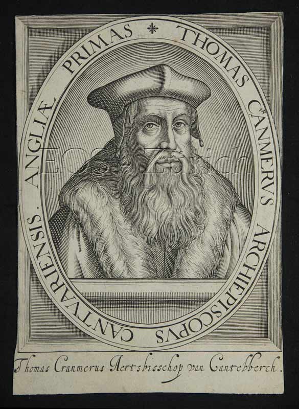 Cranmer, Thomas (1489-1556): Erzbischof von Canterbury (wurde in Oxford verbrannt). O.J. (um 1580). Kupferstich (Brustbild in ovaler Umrahmung). Bild- u. Blattgrösse: 17 x 12 cm.