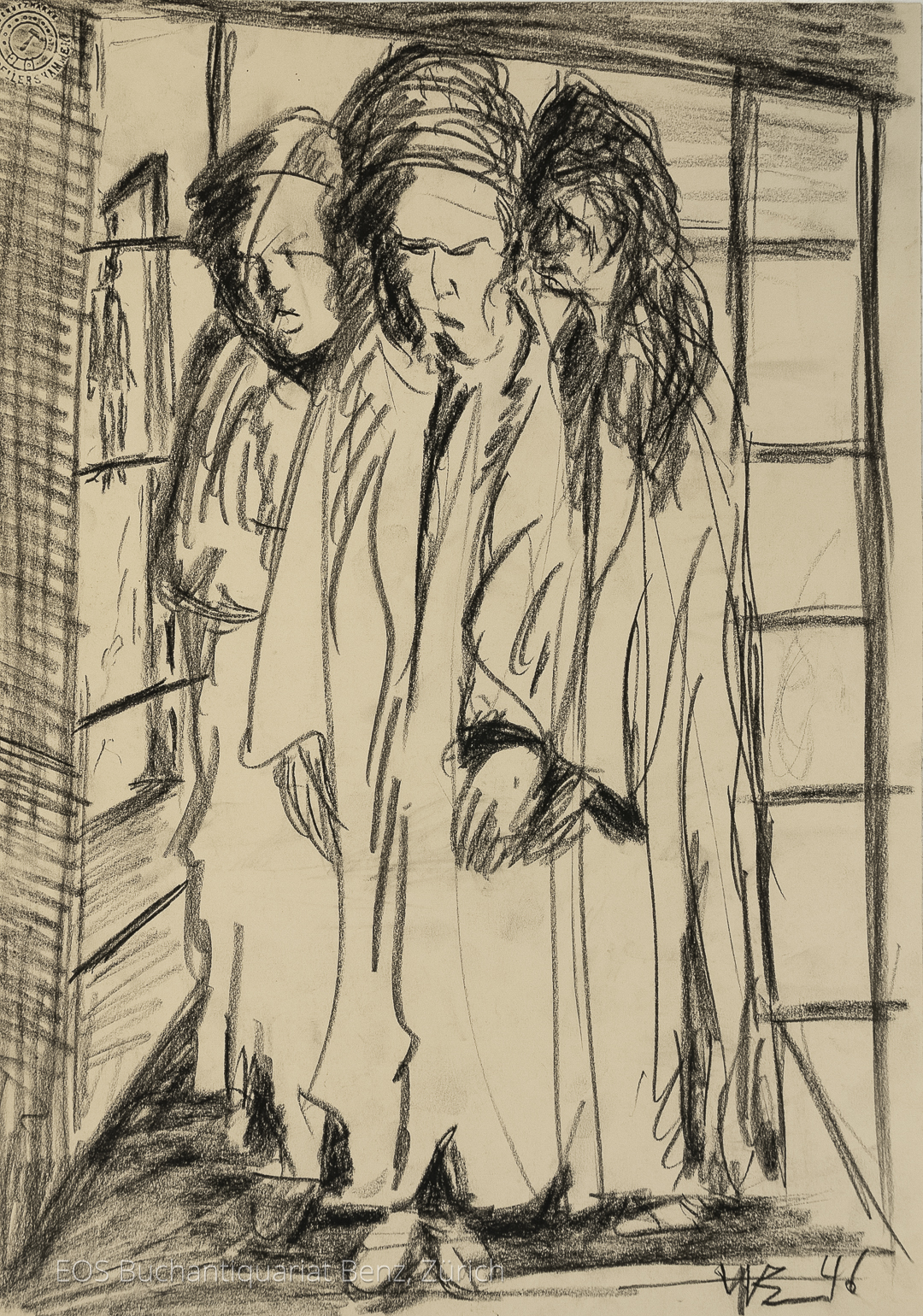 Eckertz, Waldemar (1878–1947): 3 Gestalten. 1946. Kohle auf festem Papier, unten rechts monogrammiert und datiert. 43 x 30 cm.