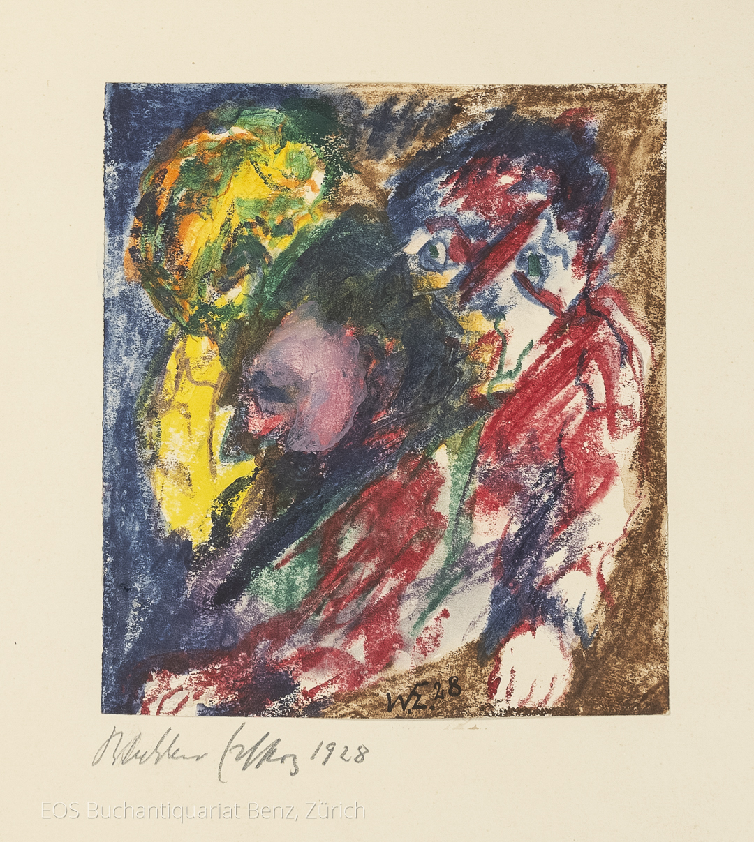 Eckertz, Waldemar (1878–1947): 3 Menschen. 1928. Farbige Kreidezeichnung. Monogrammiert und datiert. Zusätzlich unten auf Passe-Partout signiert und datiert. 25 x 18 cm.