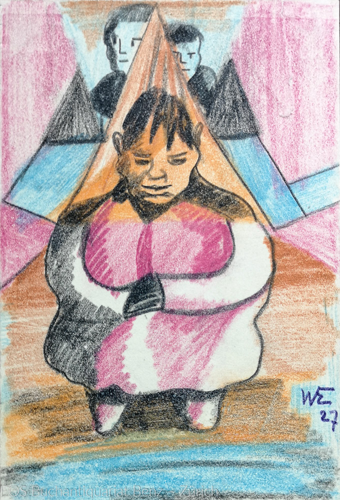 Eckertz, Waldemar (1878–1947): 3 Menschen. 1927. Farbkreide auf festem Papier, monogrammiert und datiert. 19 x 13 cm.
