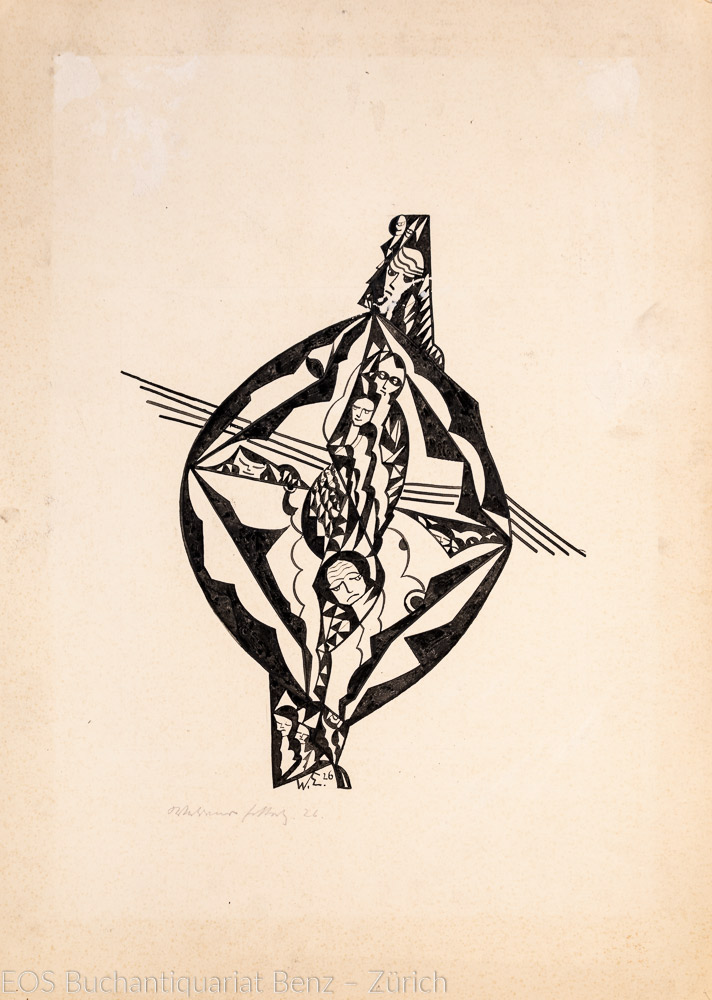 Eckertz, Waldemar (1878–1947): (Gesichter). 1926. Tusche auf festem Papier, signiert, monogrammiert und datiert. 30 x 26 cm.