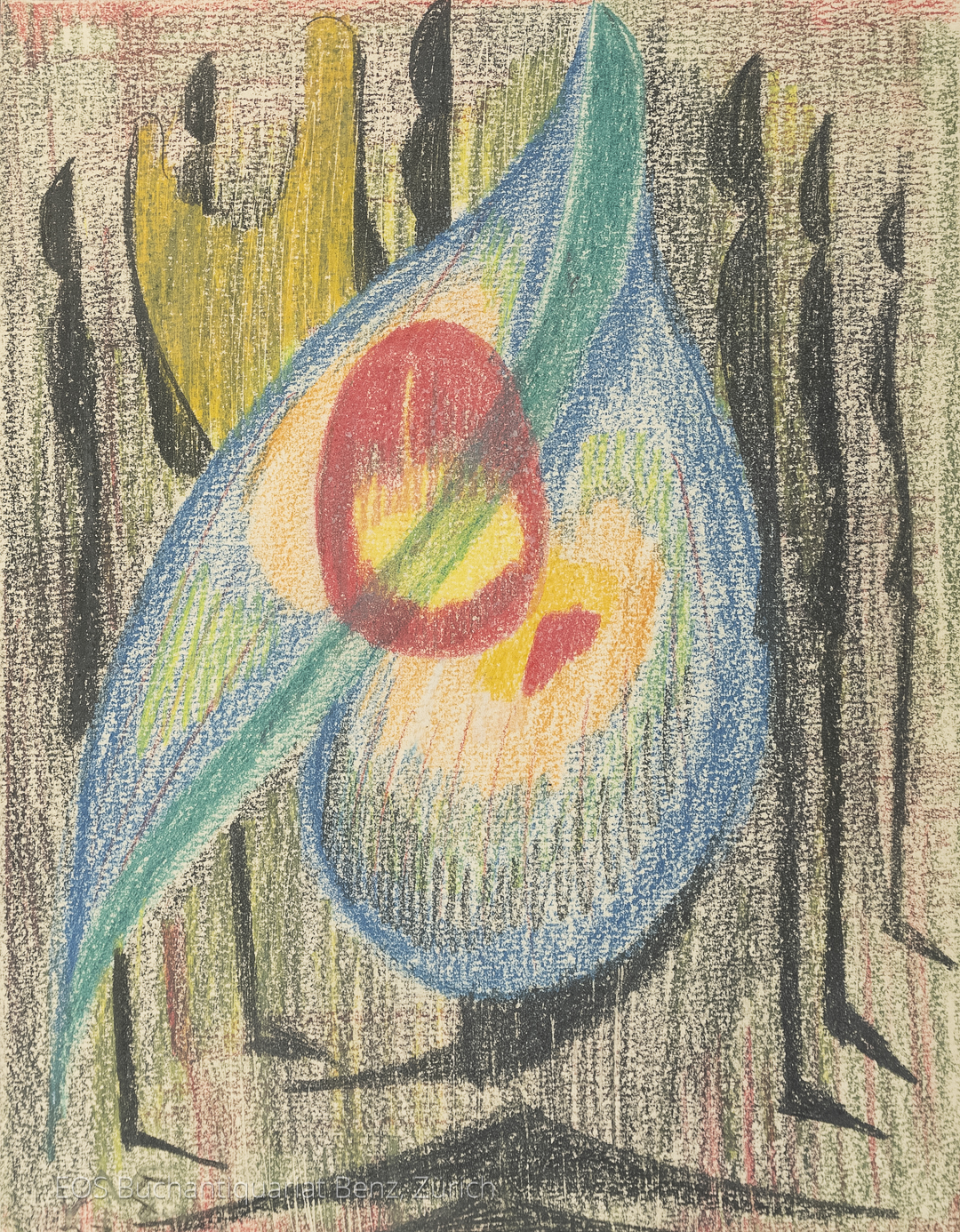 Eckertz, Waldemar (1878–1947): Gestaltung II.  1927. Farbkreide auf festem Karton, unten links. monogrammiert und datiert. Montiert. 29 x 22,5 cm.