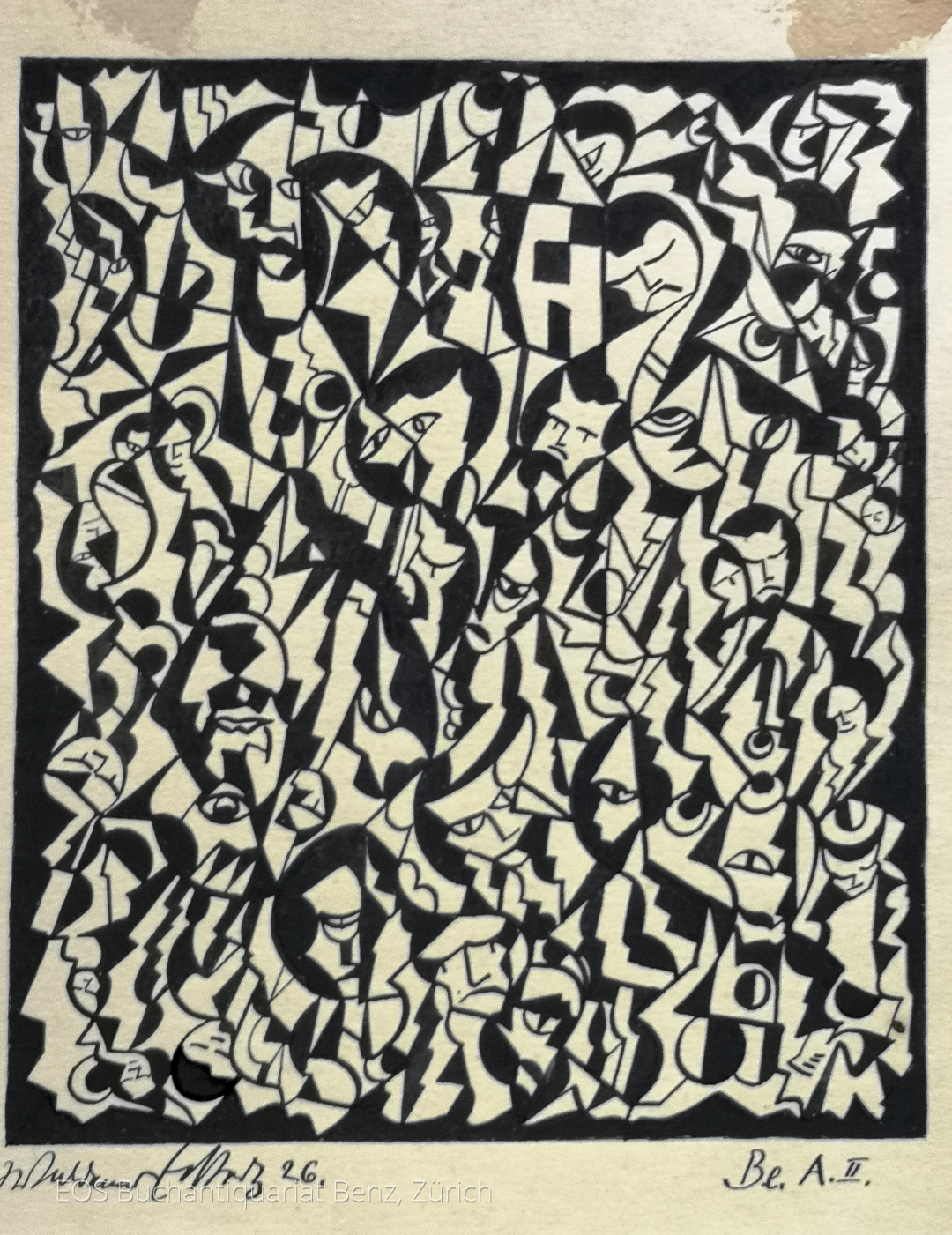 Eckertz, Waldemar (1878–1947): (Labyrinth von Köpfen und Augen). 1926 Tusche auf festem Papier, unten links signiert und datiert. 21 x 17 cm.