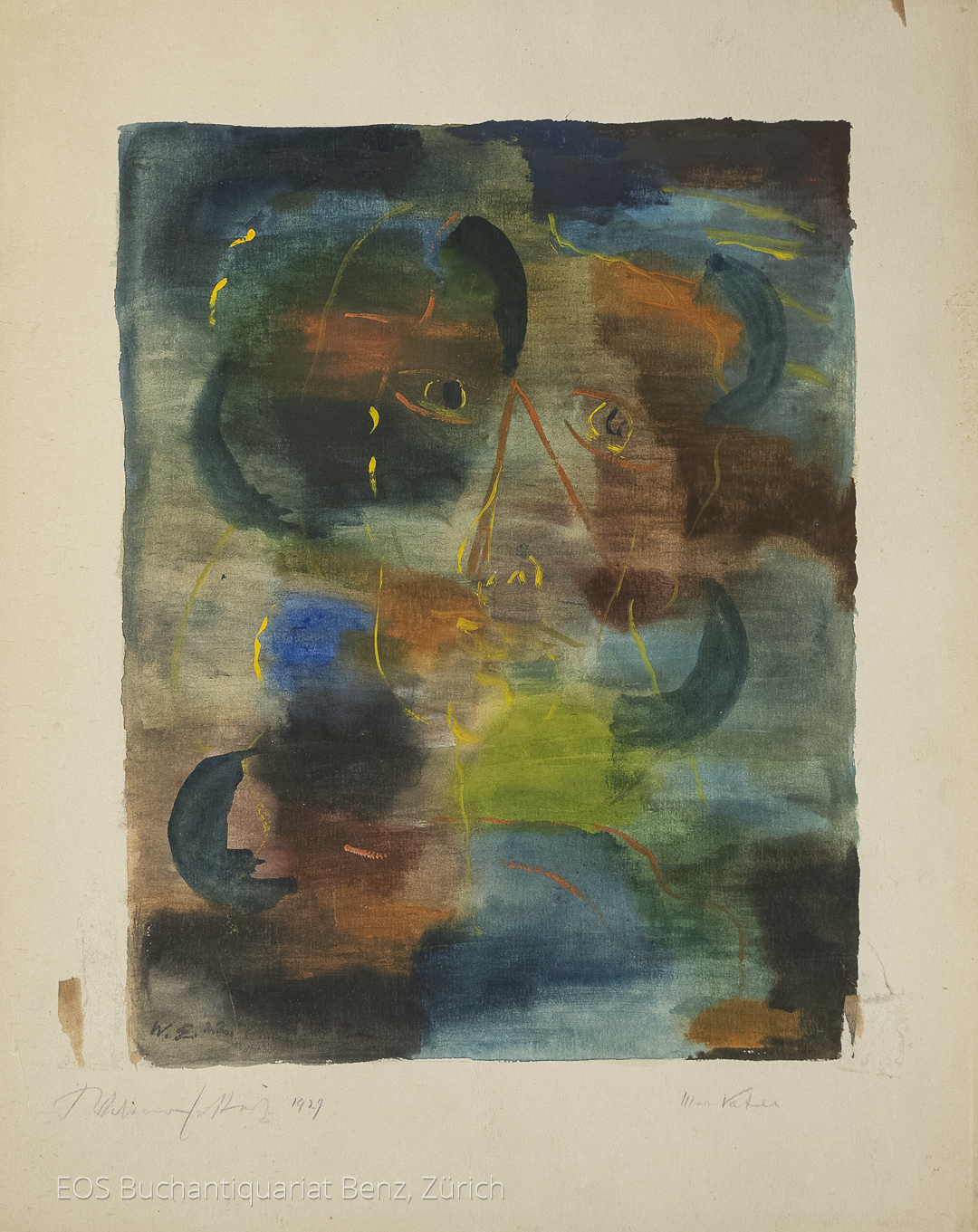Eckertz, Waldemar (1878–1947): Mein Vater 1929. Aquarell mit Flächen und einem Gesicht im Hintergrund. Unten signiert, datiert und beschriftet. 35 x 27,5 cm.