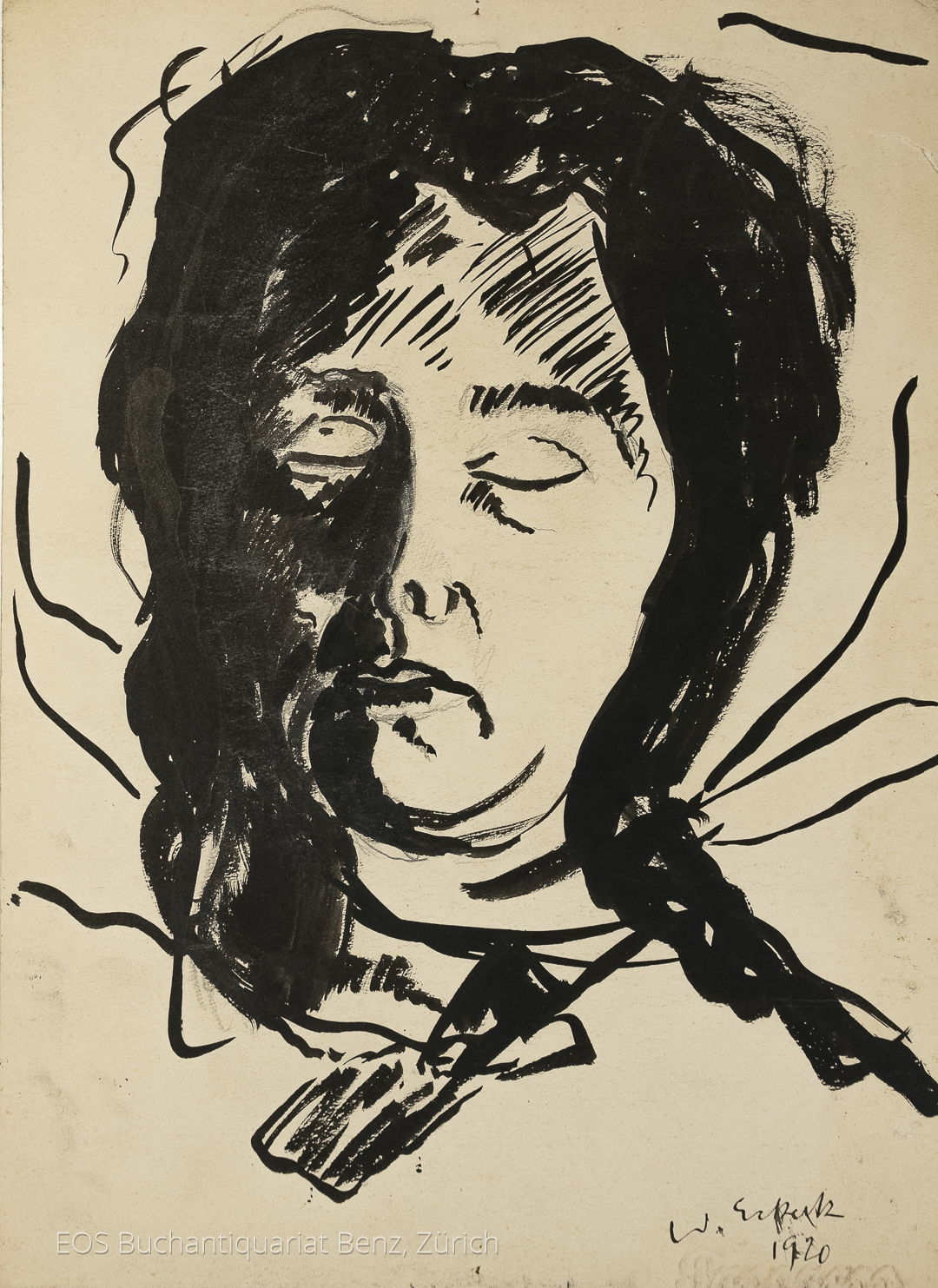 Eckertz, Waldemar (1878–1947): Porträt einer Frau – Charlotte Eckertz. 1920. Tusche auf festem Papier, unten monogrammiert und datiert. 37 x 26 cm
