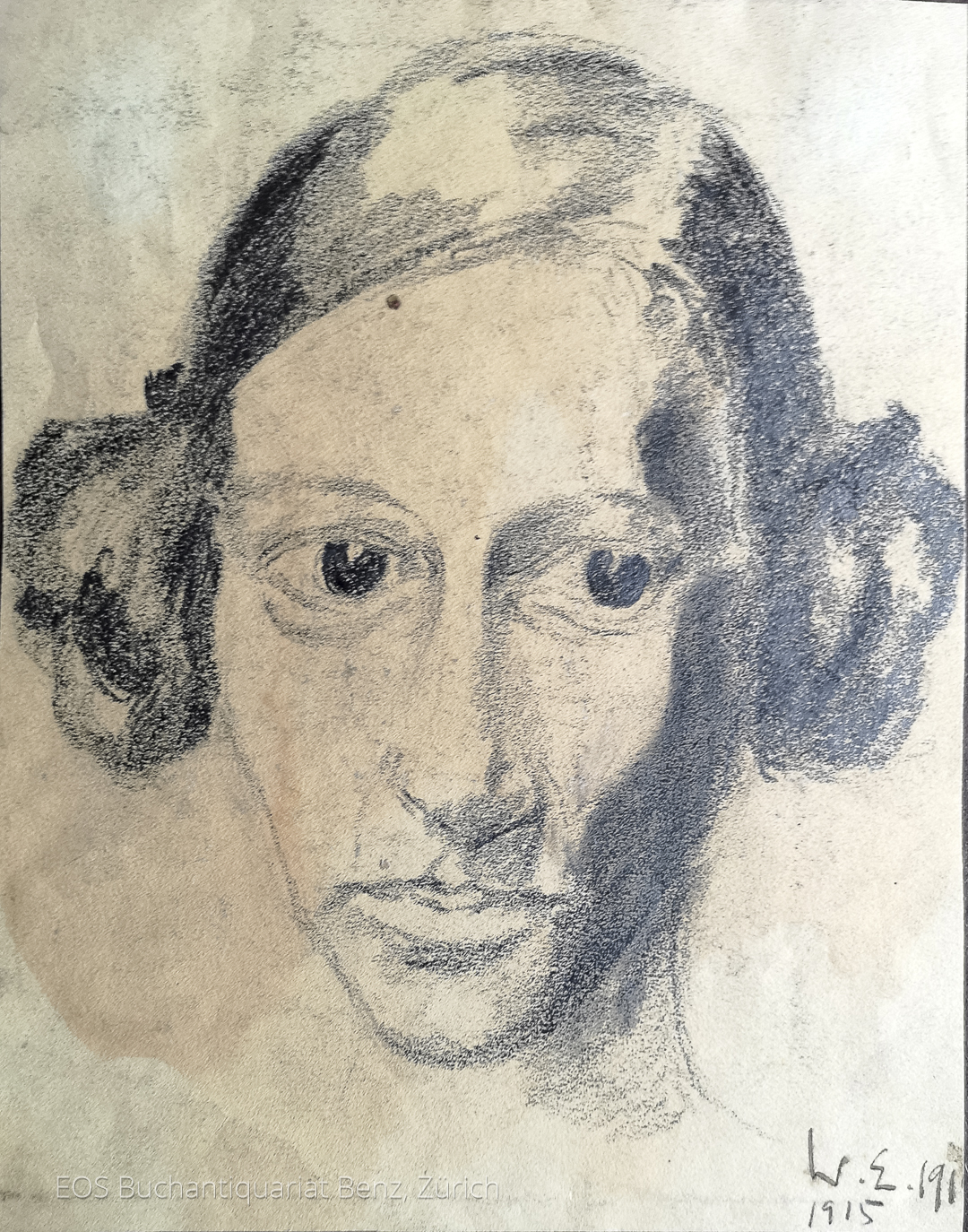 Eckertz, Waldemar (1878–1947): Porträt eines Frauenkopfes – Tante Ameranth. 1915. Bleistift auf festem Papier, unten rechts monogrammiert und datiert. 21 x 17 cm.