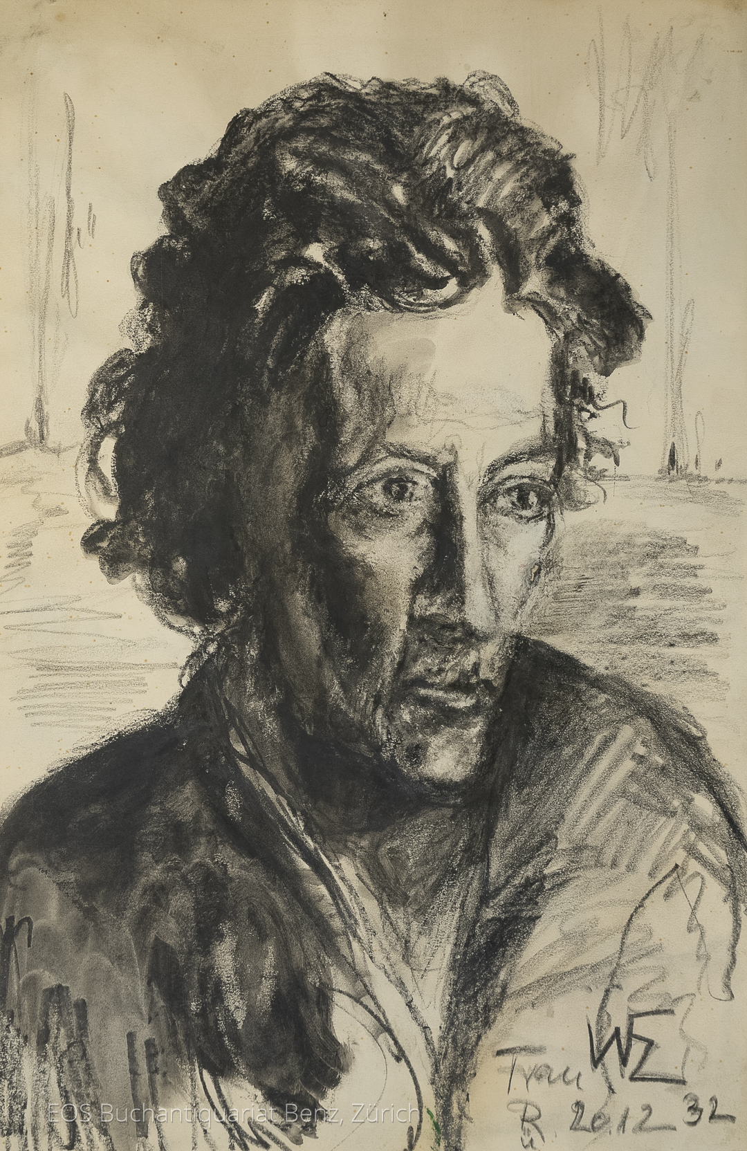 Eckertz, Waldemar (1878–1947): Porträt Frau Rü. 1932. Kohle auf Papier, unten rechts monogrammiert, datiert und bezeichnet. 48 x 32 cm.