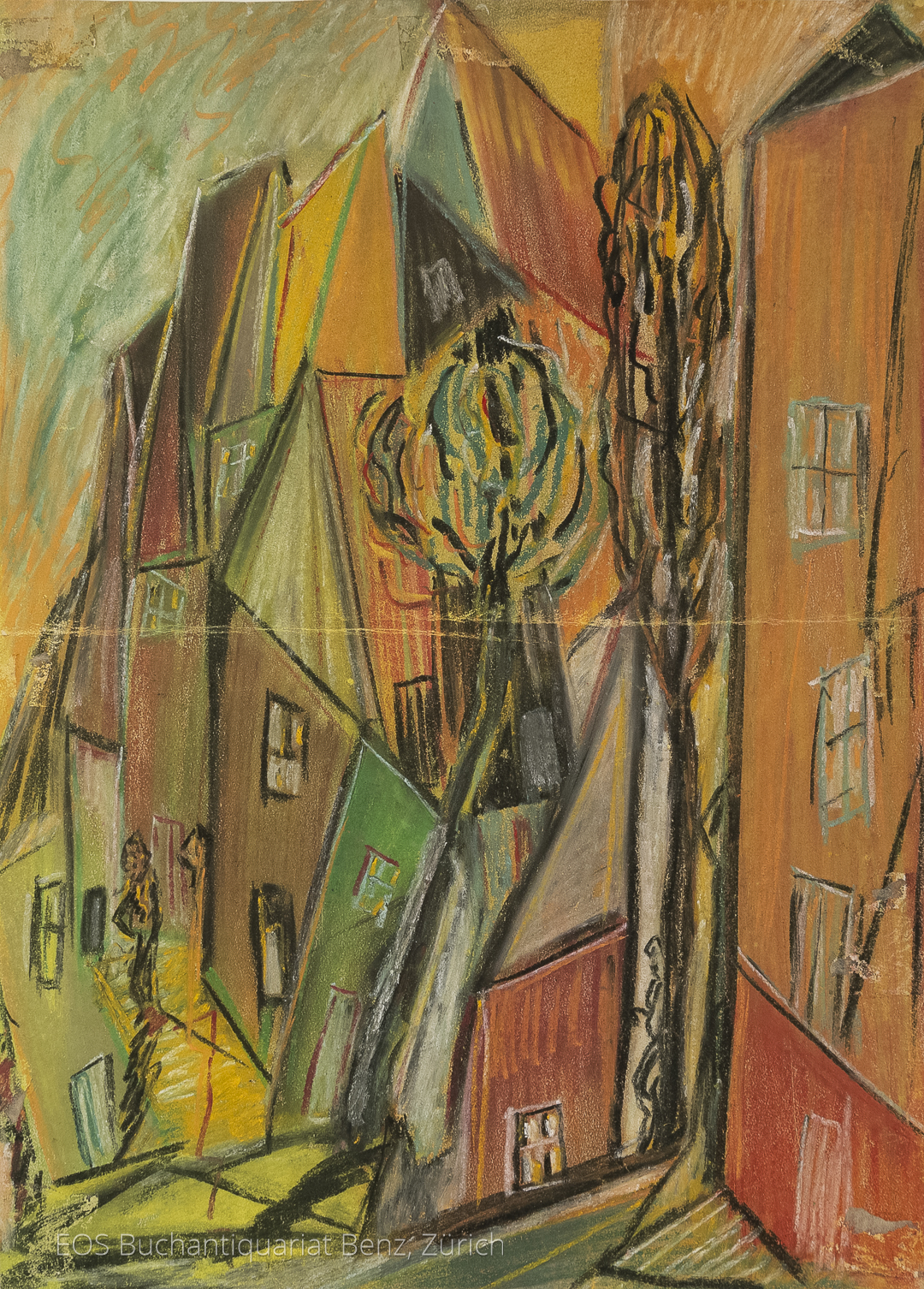 Eckertz, Waldemar (1878–1947): Stadtbild. ca. 1925. Ölkreide auf festem Papier. 63 x 45 cm.