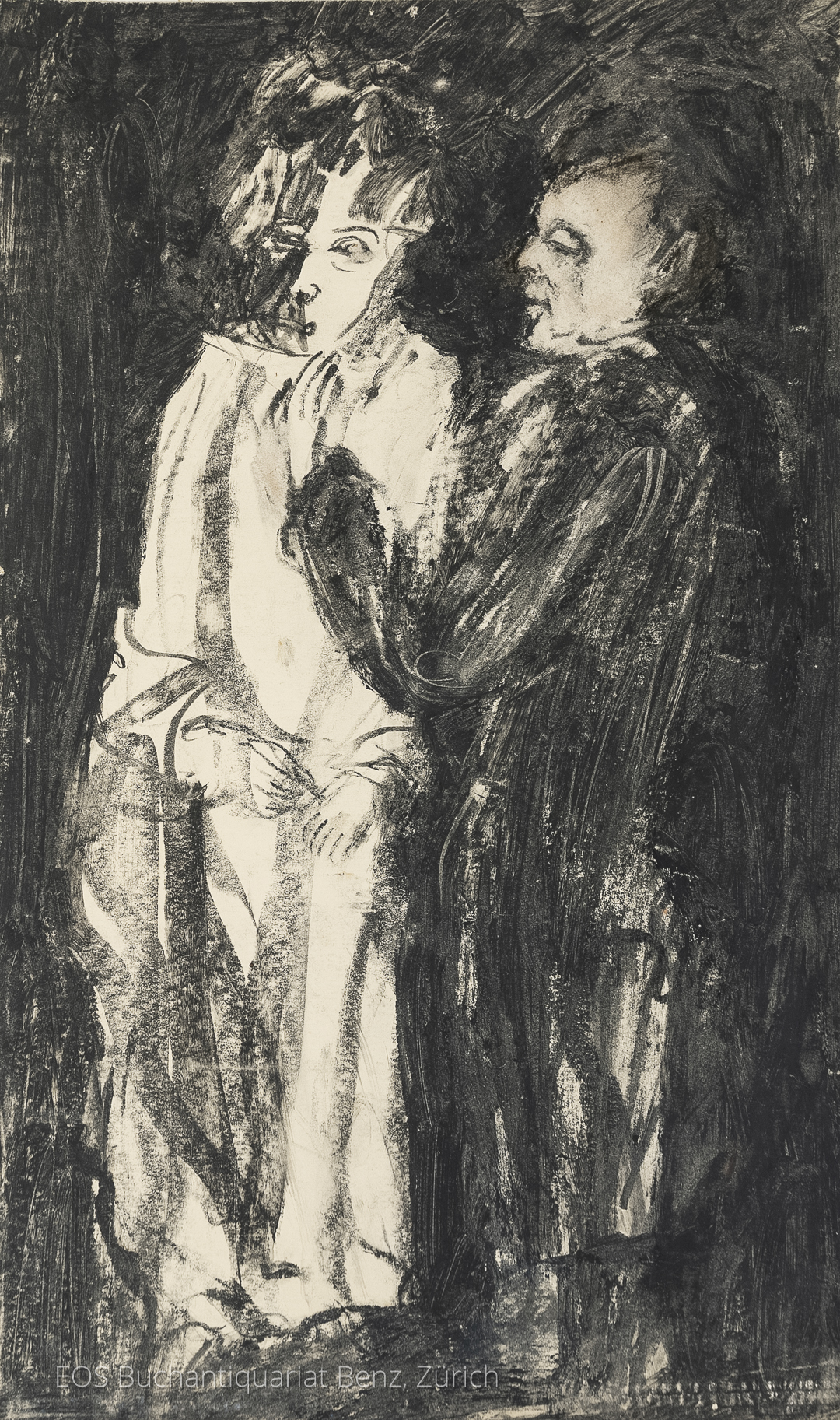 Eckertz, Waldemar (1878–1947): Stehendes Paar (Frau und Mann). ca. 1935. Kohlezeichnung auf festem Papier. 46,5 x 28 cm.