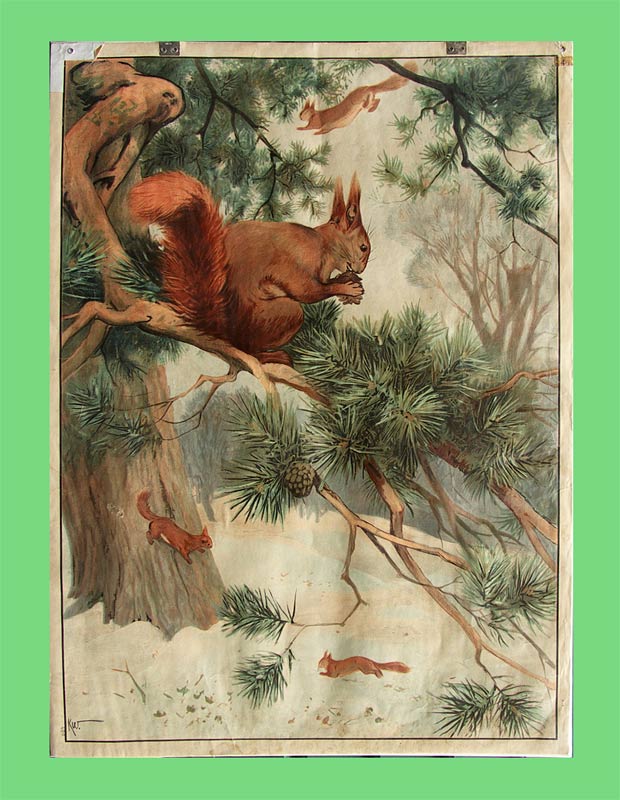 Eichhörnchen. Farbige Lithographie. Bildformat: 89 x 64 cm.
