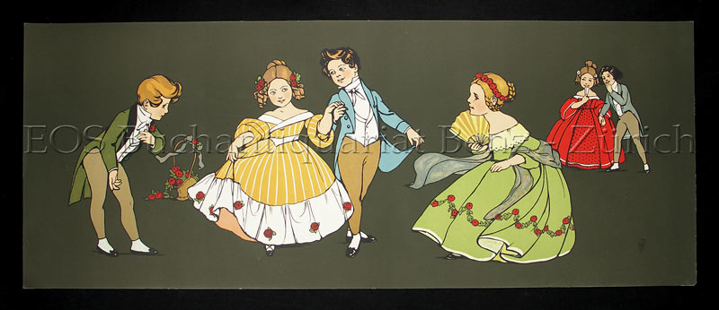 Hey, Paul: (6 tanzende Kinder). (Leipzig, Hollerbaum & Schmidt), ca. 1910. Farbige Lithographie. 70 x 28 cm.