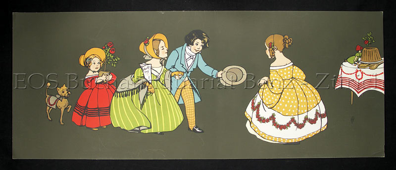 Als Wandbild oder Fries für Kinderzimmer und Schulen gedacht. Ursprünglich wurden diese Wandfriese mit der Darstellung von kindlichen Motiven und Märchen von Gertrud Caspari gemacht und über den Verlag Voigtländer vertrieben. Da dieses Geschäft erfolgreich schien, kopierte der Berliner Plakatverlag Hollerbaum & Schmidt dieses Idee.