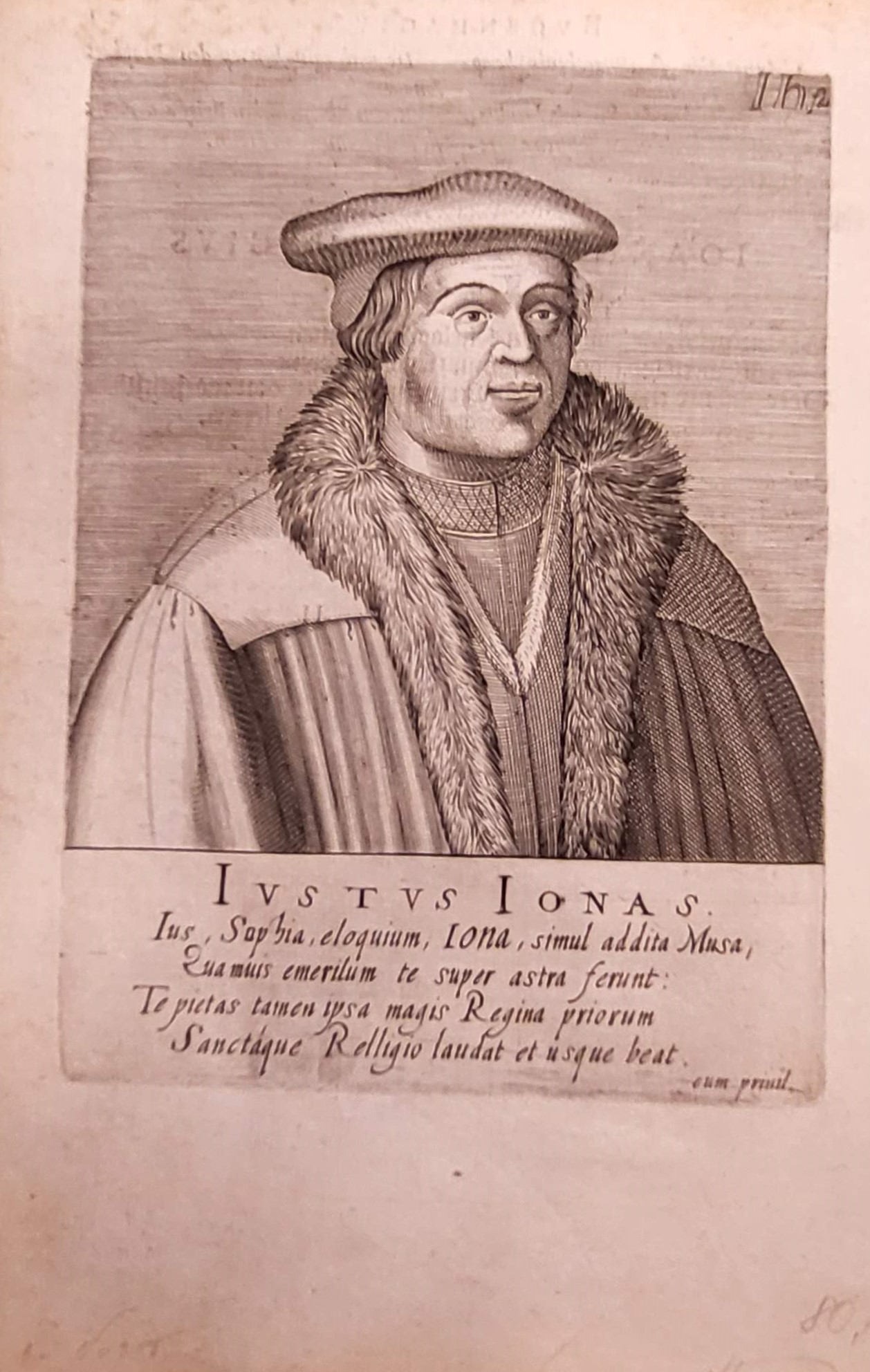 Jonas, Justus (1493-1555): Dt. Theologe. O.J. (um 1680). Kupferstich (Brustbild). Bildgrösse: 17 x 12,5 cm. Blattgrösse: 23,5 x 15,5 cm.