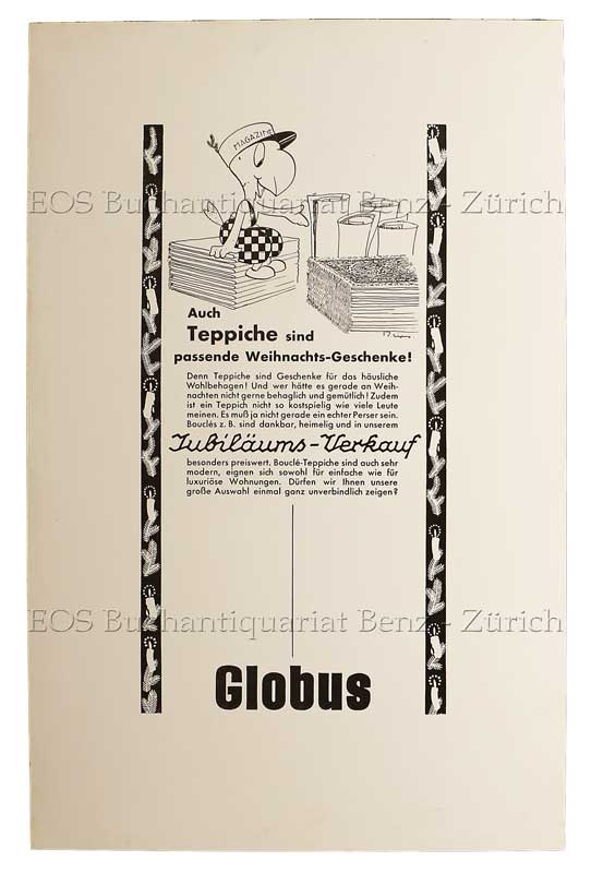 Globi. – Lips, Robert (1912-1975): Auch Teppiche sind passende Weihnachts-Geschenke! Zürich, Globus, um 1932. Blattformat: 38.5 x 25 cm.