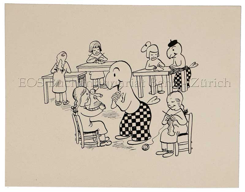 Globi. – Lips, Robert (1912-1975): (Globi in der Schule) Zürich, Globus, um 1932. Blattgrösse: 9 x 11 cm.
