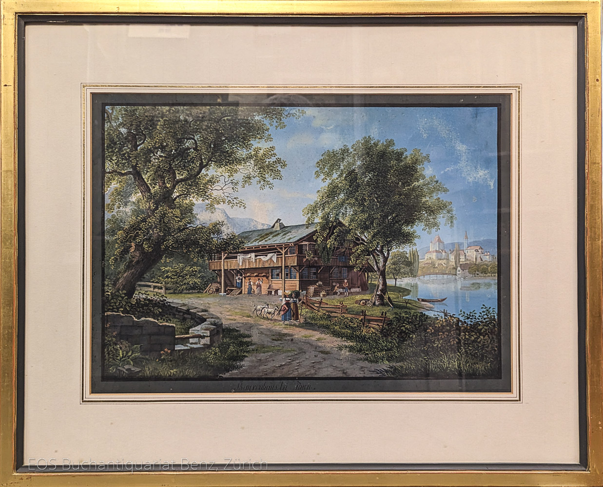 Lory, Gabriel Ludwig (zugeschrieben). (1763–1840). Bauernhaus bei Thun. ca. 1840. Farbiges Aquarell. Bildformat: 57 x 70 cm.