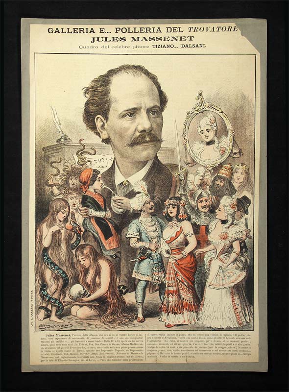 Massenet, Jules Emile Frédéric (1842-1912): Französischer Komponist. O.J. (um 1900). Farb. Zeitungsillustr. Blattgrösse: 37 x 25 cm.