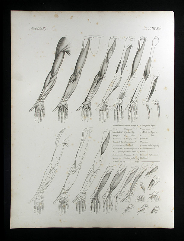 Oesterreicher, Johann Heinrich (1805-1843): Muskellehre. München, 1829. Lithographie mit 23 Abb. Bildgrösse: 44 x 33 cm. (picture size). Blattgrösse: 54 x 40 cm. (leaf size).