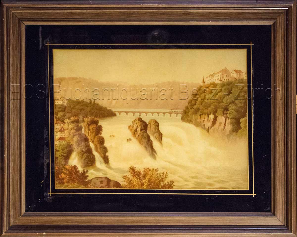 Rheinfall. (um 1860). Chromolithographie hinter Glas. Bildausschnitt: 28,5 x 39 cm.