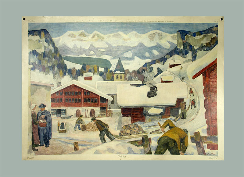 Sidler, Alfred (1905-1992): Winter. Zofingen, Ringier, o.J. (um 1940). Farbige Lithographie. Bildformat: 90 x 65 cm.