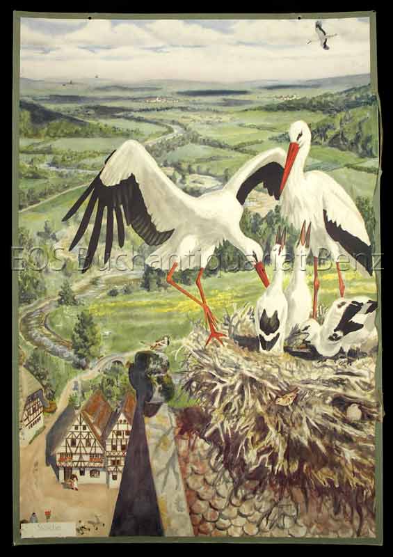 Schulwandbilder / Wall charts, Naturwissenschaften / Natural Sciences, Schulwandbild / Wall chart, Störche / Storks, Vögel – Ornithologie / Birds – Ornithology, Vogelnest / Bird’s nest